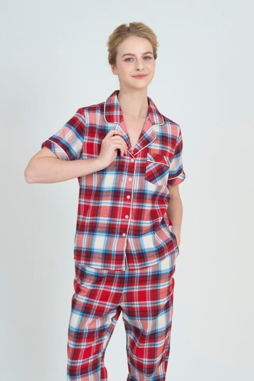 Bộ đồ mặc nhà pijama họa tiết caro trên nền xanh mang đến vẻ ngoài thanh lịch và thoải mái cho mùa lễ Tết và cả những ngày thường. Chất liệu kate cao cấp, mềm mại và thoáng mát giúp bạn dễ chịu và thư giãn tối đa.