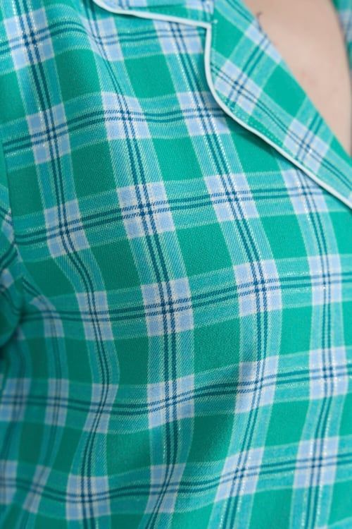 Gam màu caro xanh tươi mát mang đến vẻ ngoài trẻ trung, năng động và đầy sức sống. Họa tiết caro kinh điển giúp bộ đồ vừa nổi bật vừa dễ mặc, phù hợp với nhiều phong cách khác nhau.
