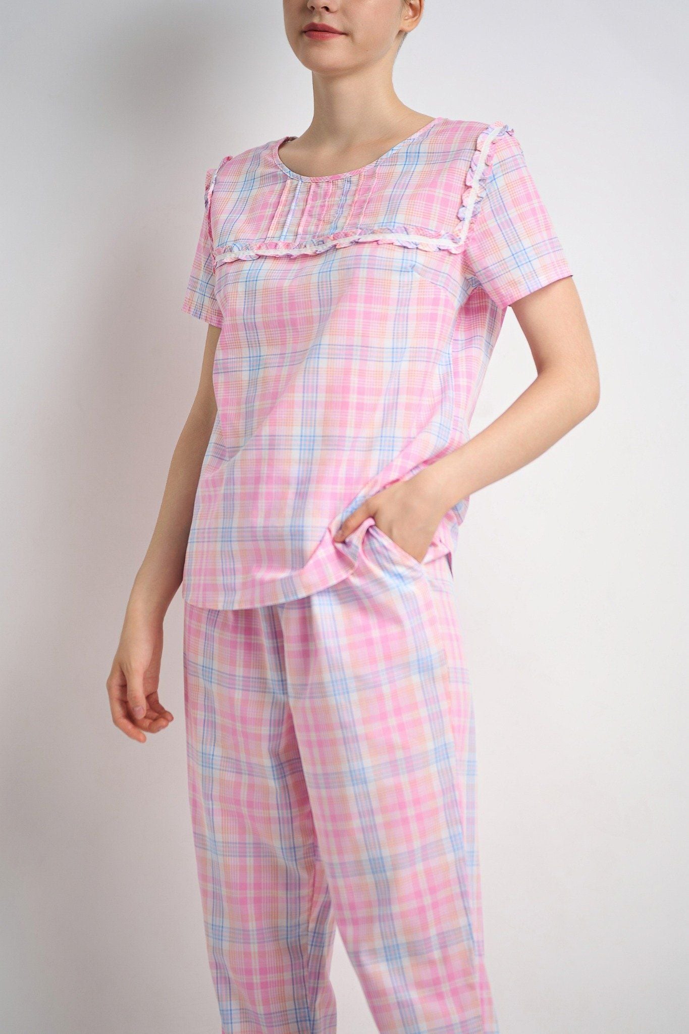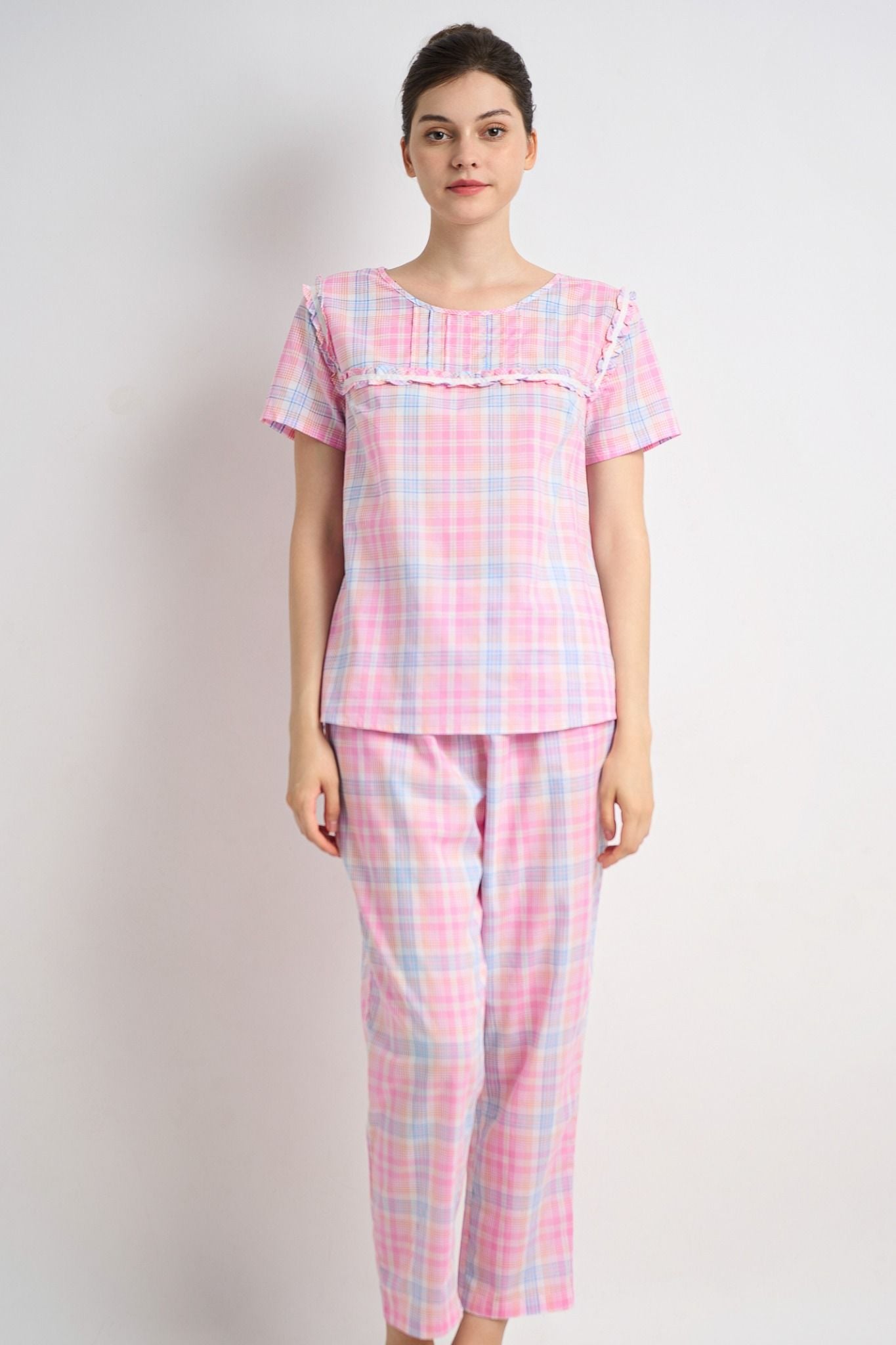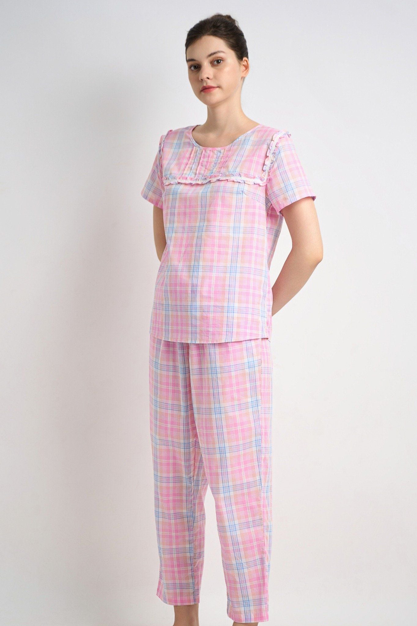 BSK08W5K01-BỘ SHORT KATE VỚI THIẾT KẾ CỔ PIJAMA KẾT HỢP HỌA TIẾT CARO ĐỎ MANG ĐẾN SỰ TRẺ TRUNG VÀ NĂNG ĐỘNG RẤT PHÙ HỢP ĐỂ DIỆN TRONG DỊP TẾT