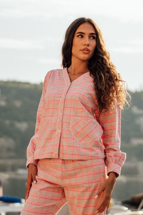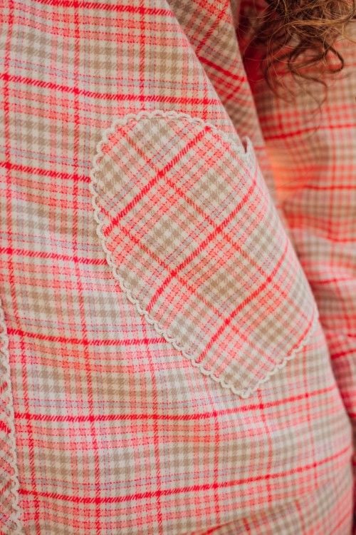 Bộ kate nỉ áo tay dài quần dài, cửa tay giả sơ mi, áo có 2 túi đắp hình trái tim