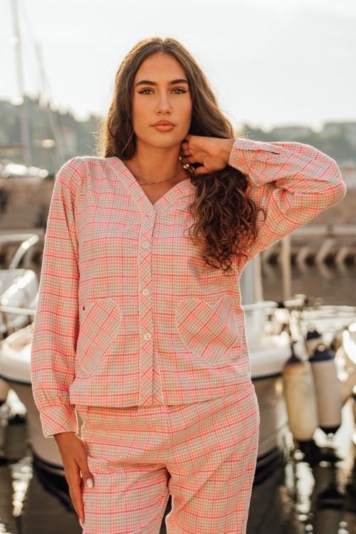 BKD100W41-BỘ DÀI TAY CỔ TIM, CHẤT KATE NỈ ẤM ÁP CHO THU ĐÔNG