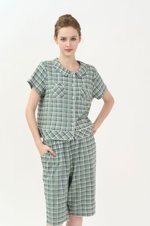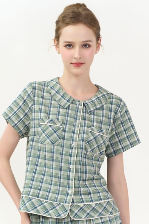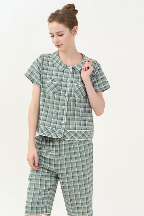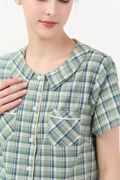 Họa tiết in caro xanh rêu xinh xắn, mang đến cảm giác tươi mới, tràn đầy nữ tính.