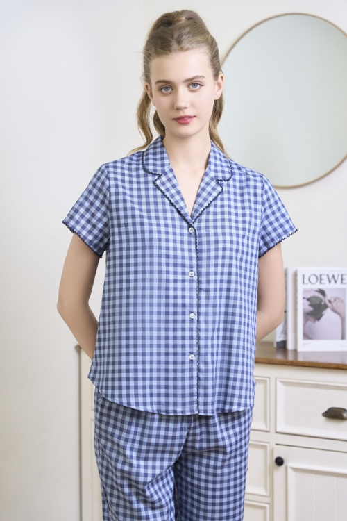 Bộ đồ lửng mặc nhà thiết kế pijama với điểm nhấn may phối ren nổi bật tinh tế ở cổ áo, lai tay và lai quần, mang đến sự thoải mái và thoáng mát tối đa. Chất liệu kate ngoại nhập cao cấp kết hợp cùng họa tiết caro tươi tắn giúp bạn thư giãn tuyệt đối tại nhà.