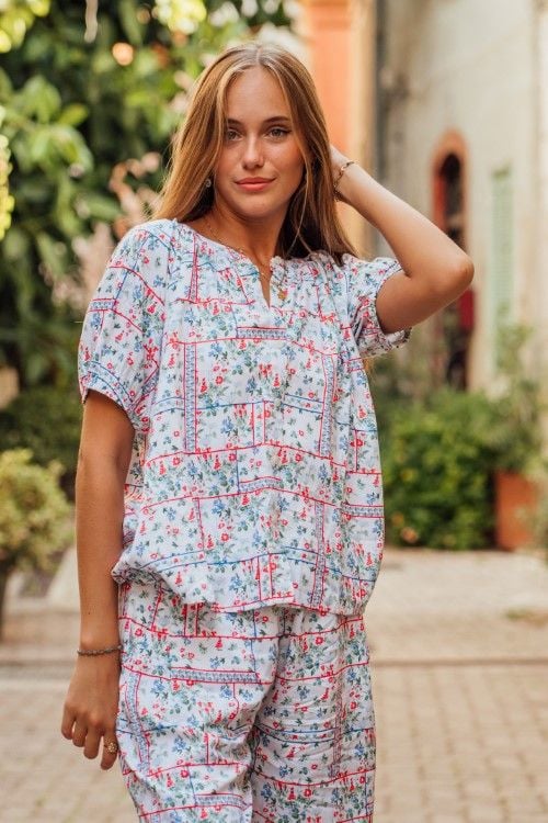 Bộ đồ lửng mặc nhà với thiết kế cổ nẹp tròn thanh lịch và hàng nút cài tinh tế đến vẻ ngoài nữ tính, dịu dàng. Chất liệu tole ngoại nhập cao cấp, mềm mại và thoáng mát, kết hợp cùng họa tiết hoa lá tươi tắn sẽ giúp bạn thư giãn thoải mái tại nhà.