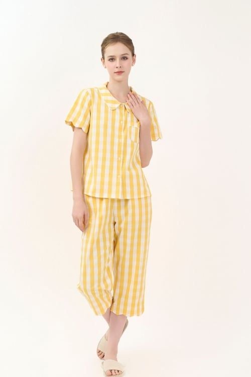 Bộ đồ lửng mặc nhà thiết kế áo cổ tròn lá sen và quần lửng, mang đến sự thoải mái và thoáng mát tối đa. Chất liệu kate ngoại nhập cao cấp giúp bạn thư giãn tuyệt đối tại nhà.