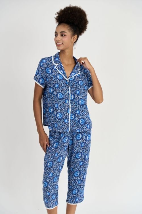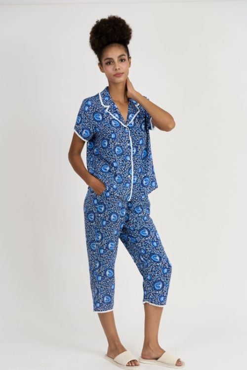 Bộ đồ lửng mặc nhà thiết kế pijama với điểm nhấn ren nổi bật tinh tế ở cổ áo, lai tay và lai quần, mang đến sự thoải mái và thoáng mát tối đa. Chất liệu tole ngoại nhập cao cấp kết hợp cùng họa tiết hoa lá tươi tắn giúp bạn thư giãn tuyệt đối tại nhà.