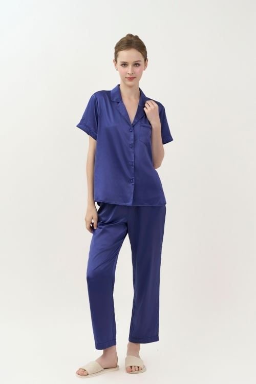 Bộ đồ được làm từ chất liệu satin 100% Polyester cao cấp, mang đến cảm giác mềm mại, mát lạnh và vô cùng thoải mái khi chạm vào da