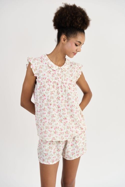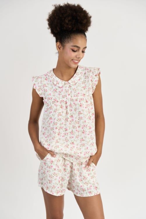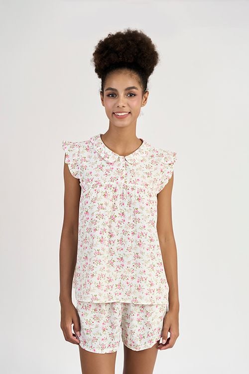 BSK015S32-BỘ TOLE SHORT THIẾT KẾ CỔ SEN VÀ PHỐI TAY BÈO XINH XẮN VỚI HỌA TIẾT HOA NHÍ TẠO CẢM GIÁC THOẢI MÁI VÀ TƯƠI TRẺ.