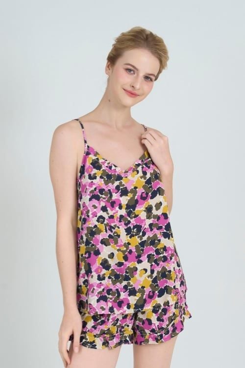 Bộ short tole 2 dây mang phong cách trẻ trung và nữ tính với thiết kế hai dây mảnh nhẹ nhàng, giúp tổng thể trang phục trở nên thanh thoát và thoải mái khi mặc. Áo dáng suông kết hợp cùng quần short gọn gàng tạo cảm giác dễ chịu, phù hợp cho những ngày thư giãn tại nhà.