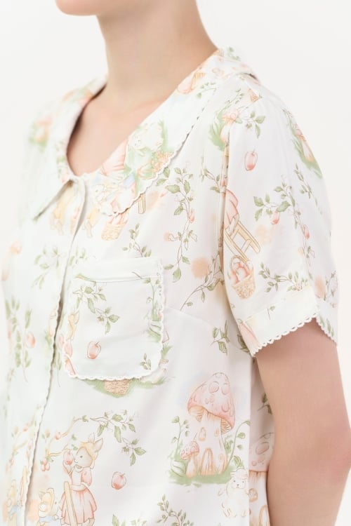 Họa tiết in dễ thương trên nền vải trắng thanh lịch.