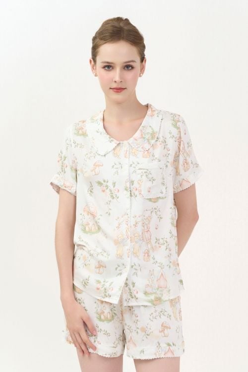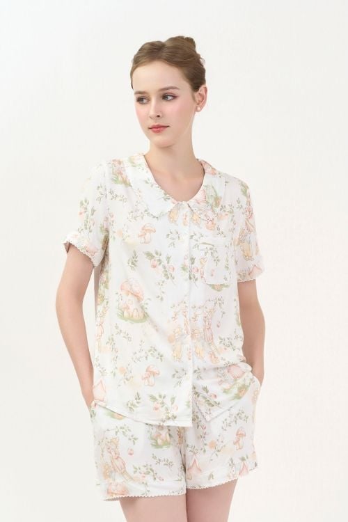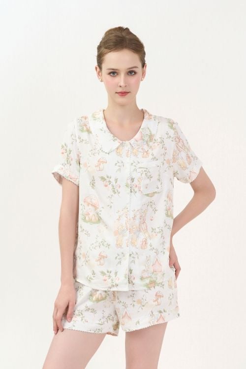 Bộ đồ ngủ short pijama với thiết kế cổ lá sen độc đáo, mang đến vẻ ngoài ngọt ngào, nữ tính. Chất liệu tole cao cấp, mềm mại tạo cảm giác thoải mái và tươi trẻ, phù hợp cho những ngày thư giãn tại nhà
