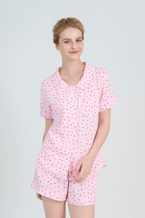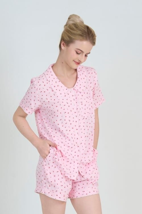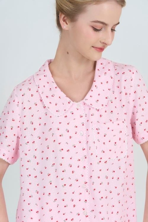 Màu hồng được điểm xuyến bởi những đóa hoa nhí tạo nên một tổng thể vô cùng hài hòa và mát mắt. Họa tiết này mang lại cảm giác thư thái, tươi mới, giúp bạn luôn rạng rỡ ngay cả khi nghỉ ngơi tại gia.