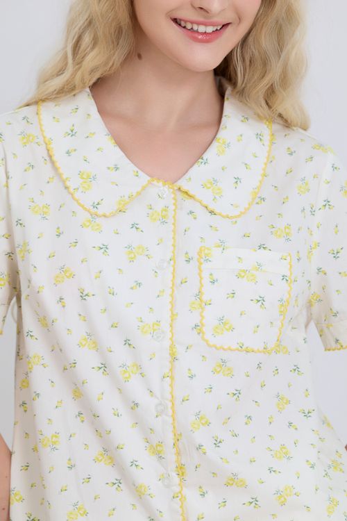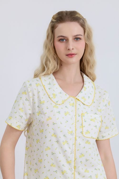 Màu kem được điểm xuyến bởi những đóa hoa nhí tạo nên một tổng thể vô cùng hài hòa và mát mắt. Họa tiết này mang lại cảm giác thư thái, tươi mới, giúp bạn luôn rạng rỡ ngay cả khi nghỉ ngơi tại gia.