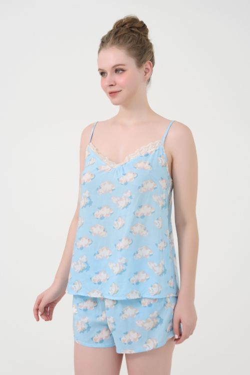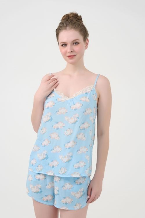 Thiết kế hai dây thanh mảnh, tạo nét quyến rũ và nhẹ nhàng. Cổ trước có phối ren tạo điểm nhấn sexy nhưng vẫn tinh tế. Quần short cạp chun co giãn, thoải mái.