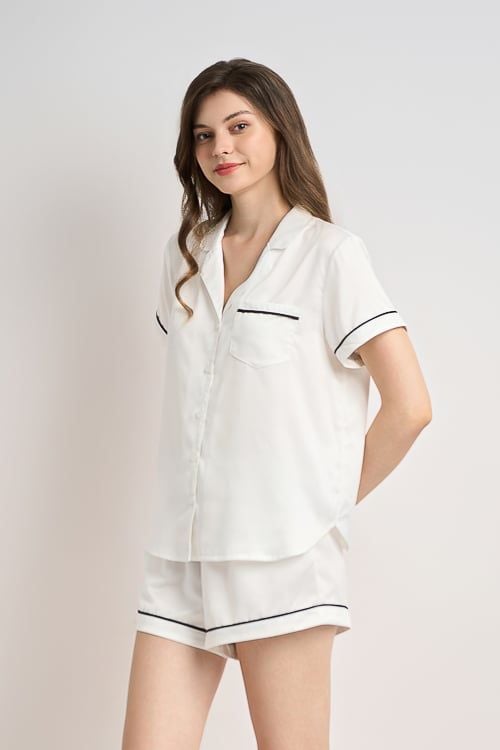 BSS02S5S54-BỘ SHORT SATIN VỚI THIẾT KẾ CỔ PIJAMA MANG PHONG CÁCH NHẸ NHÀNG VÀ THOẢI MÁI KHI MẶC