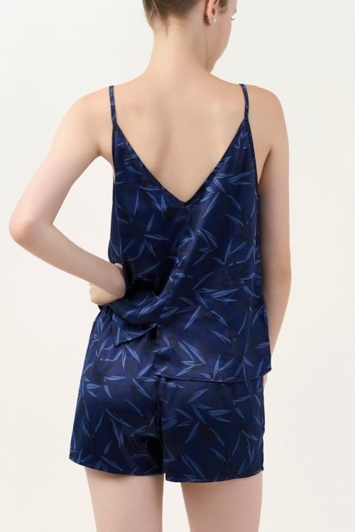Thiết kế hai dây thanh mảnh, tạo nét quyến rũ và nhẹ nhàng. Cổ trước có dún nhẹ, giúp tôn lên vòng một đầy đặn và nữ tính kết hợp với cổ sau xẻ sâu chữ V, tạo vẻ sexy nhưng vẫn tinh tế. Quần short cạp chun co giãn, thoải mái.