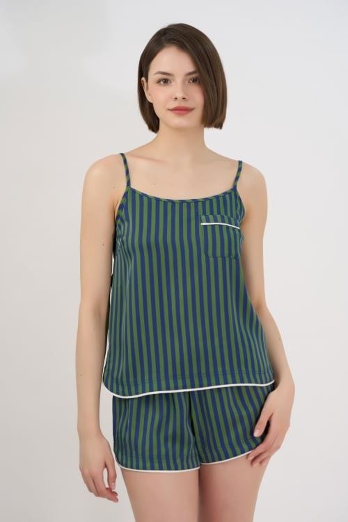 Bộ đồ mặc nhà satin cao cấp với thiết kế hai dây quyến rũ, mang lại cảm giác mềm mại, thoáng mát. Cổ thuyền nữ tính, giúp nàng thêm cuốn hút và thoải mái khi mặc.
