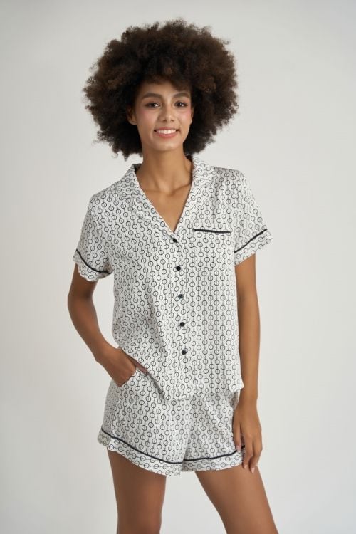 BSS070S54-BỘ SHORT SATIN CỔ PIJAMA VỚI CHẤT LIỆU MỀM MỊN, MÁT MẺ MANG LẠI CẢM GIÁC THOẢI MÁI VÀ SANG TRỌNG KHI MẶC.