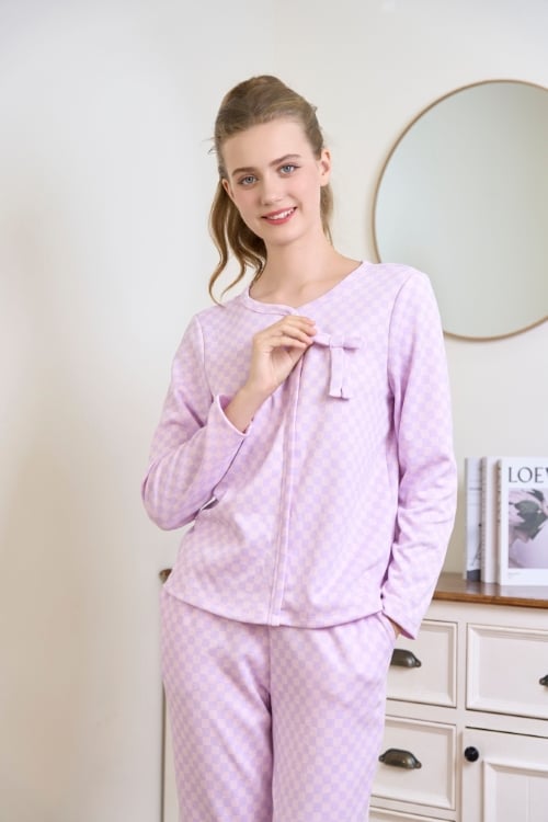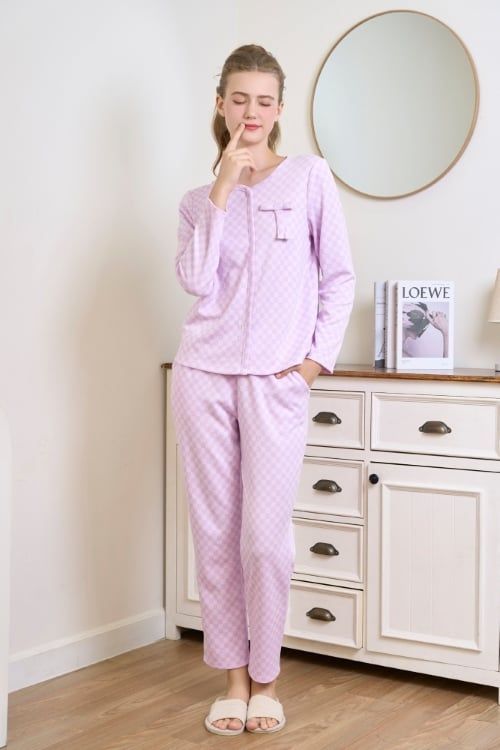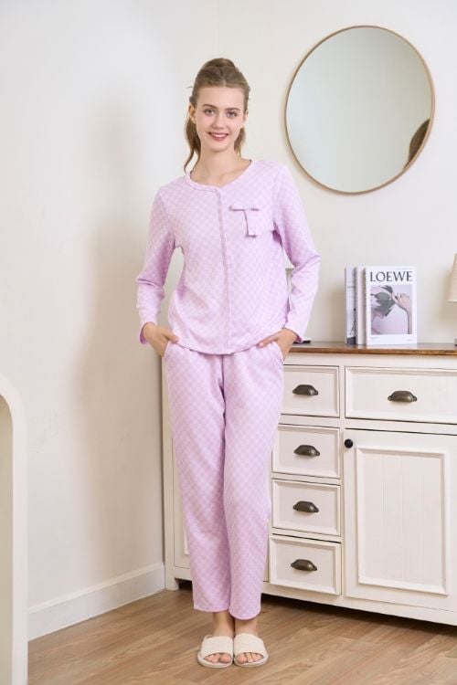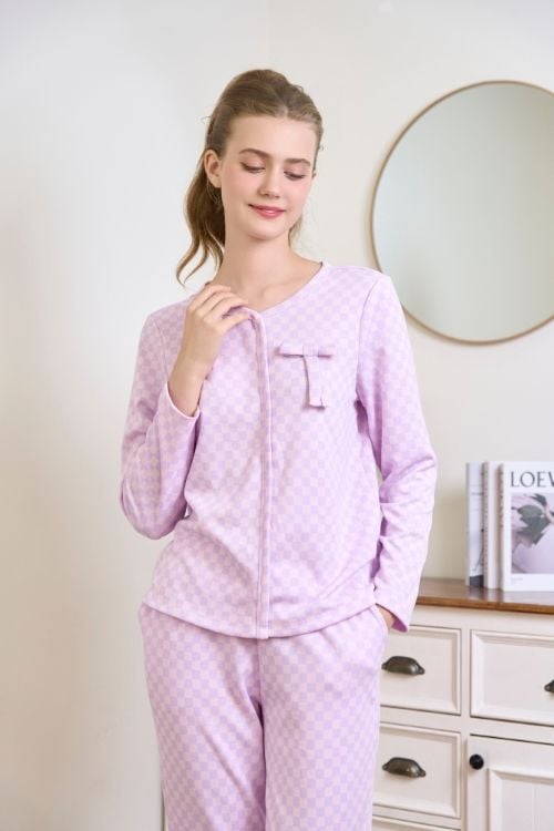 BTD02W5T06-BỘ THUN DÀI VỚI THIẾT KẾ CỔ TRÒN VIỀN ĐIỂM NHẤN NƠ XINH XẮN TẠO CẢM GIÁC NHẸ NHÀNG VÀ NỮ TÍNH.