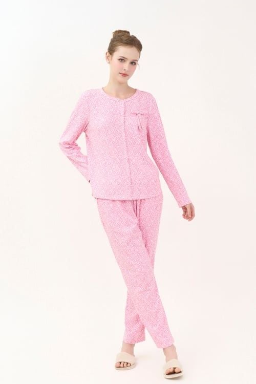 BTD02W5T09-BỘ THUN DÀI VỚI THIẾT KẾ CỔ TRÒN VIỀN ĐIỂM NHẤN NƠ XINH XẮN TẠO CẢM GIÁC NHẸ NHÀNG VÀ NỮ TÍNH.