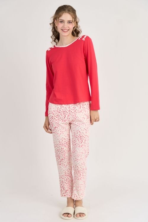 Bộ đồ thun phối áo trơn và quần họa tiết rất phù hợp để mặc ở nhà, đi ngủ hoặc đi chơi trong những ngày thời tiết se lạnh.