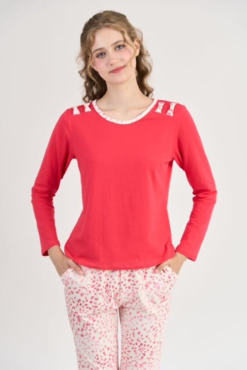 Bộ đồ thun nữ là lựa chọn hoàn hảo để bạn mặc nhà. Với thiết kế đơn giản tay dài quần dài vai có chi tiết nơ trang trí làm điểm nhấn tinh tế , bộ đồ mang đến cảm giác thoải mái tuyệt đối, giúp bạn tự tin tận hưởng những ngày se lạnh.