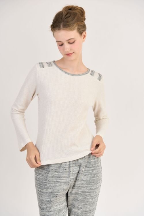 Bộ đồ thun nữ là lựa chọn hoàn hảo để bạn mặc nhà. Với thiết kế đơn giản tay dài quần dài vai có chi tiết nơ trang trí làm điểm nhấn tinh tế , bộ đồ mang đến cảm giác thoải mái tuyệt đối, giúp bạn tự tin tận hưởng những ngày se lạnh.