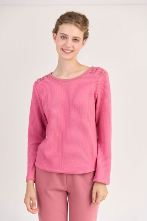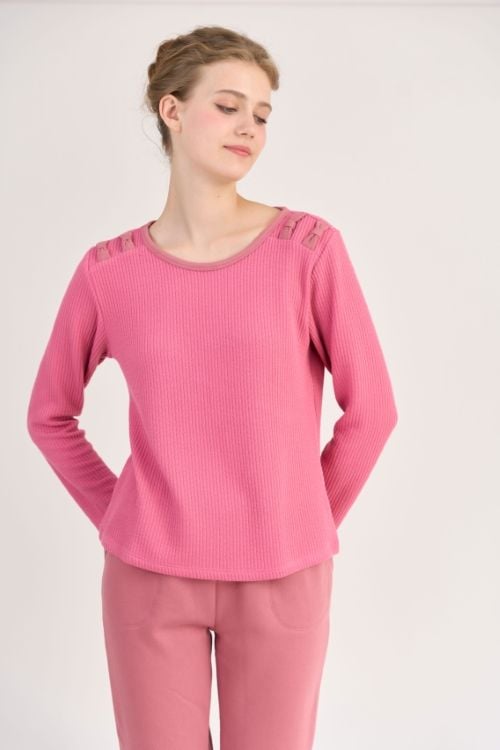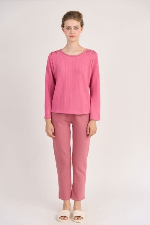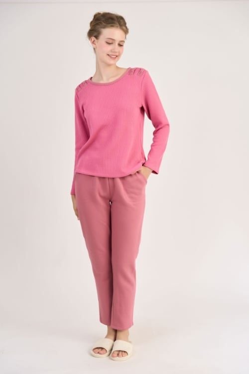 BTD12W5T01-BỘ THUN DÀI VỚI THIẾT KẾ CỔ TRÒN ĐIỂM NHẤN BÈO NỮ TÍNH MANG LẠI SỰ ẤM ÁP VÀ DỄ CHỊU KHI MẶC.