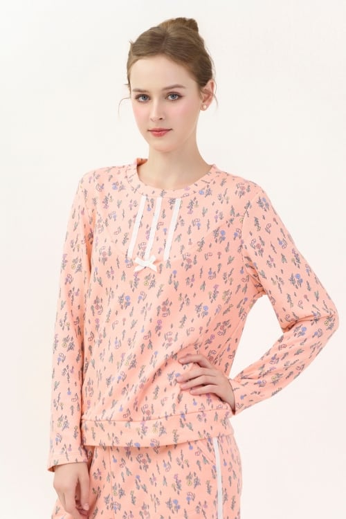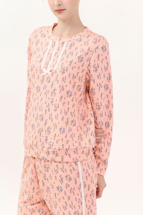 BTD04S5T15-BỘ THUN DÀI VỚI THIẾT KẾ CỔ TRÒN TRANG TRÍ DÂY RUY BĂNG NỔI BẬT MANG LẠI NÉT TRẺ TRUNG VÀ CẢM GIÁC ẤM ÁP, DỄ CHỊU KHI MẶC