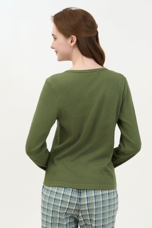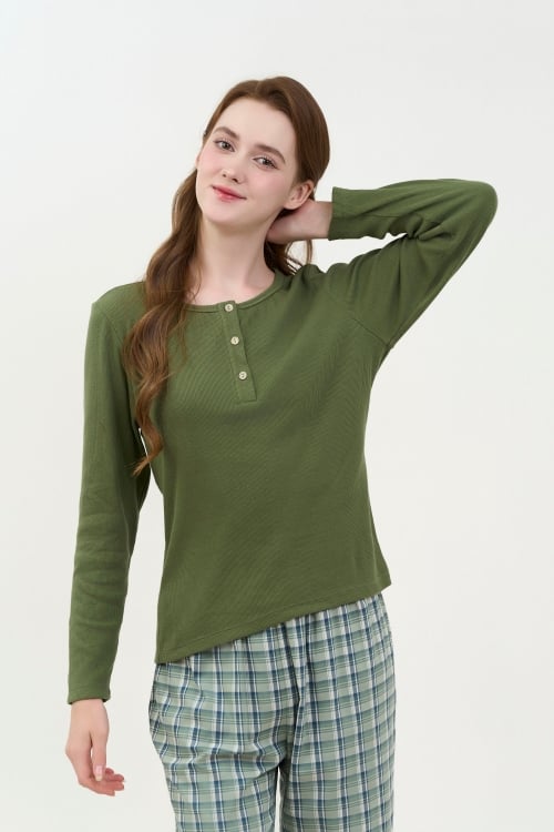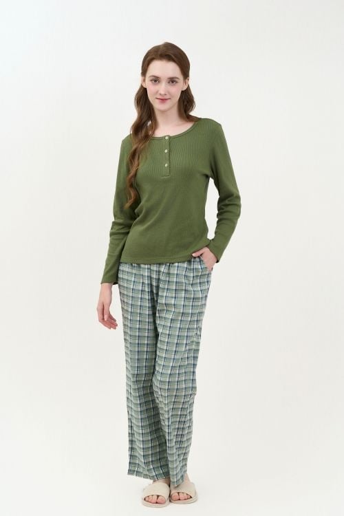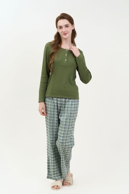 Bộ đồ mặc nhà phối quần chất kate cao cấp cùng áo thun dài tay mang đến vẻ ngoài thanh lịch, ấm áp và thoải mái. Có thể mặc ở nhà hoặc tiếp khách
