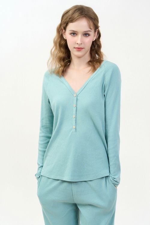 BTD05W5T02-BỘ THUN DÀI VỚI THIẾT KẾ CỔ V MANG PHONG CÁCH THOẢI MÁI VÀ THANH LỊCH
