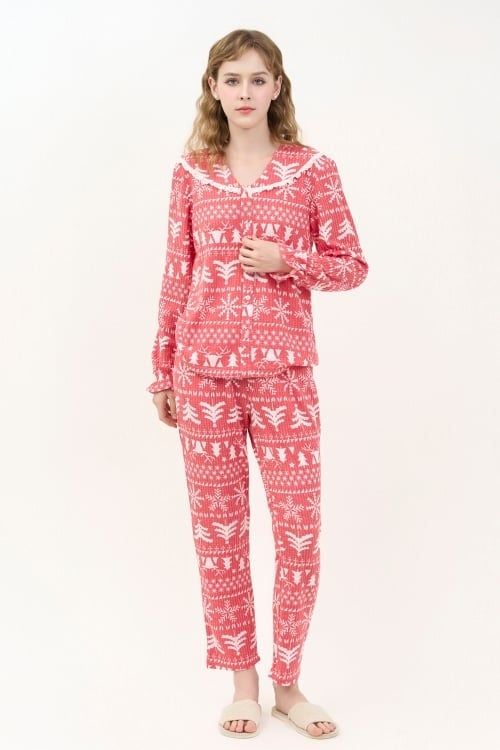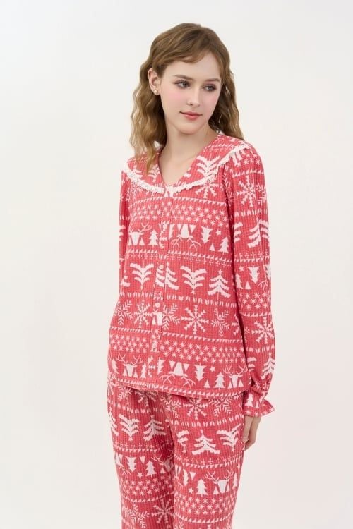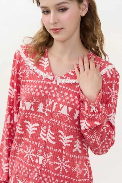 BTD07S5T15-BỘ THUN DÀI VỚI THIẾT KẾ CỔ TIM ĐIỂM NHẤN REN NỔI BẬT MANG PHONG CÁCH NHẸ NHÀNG, THOẢI MÁI CHO MÙA HÈ VÀ THU