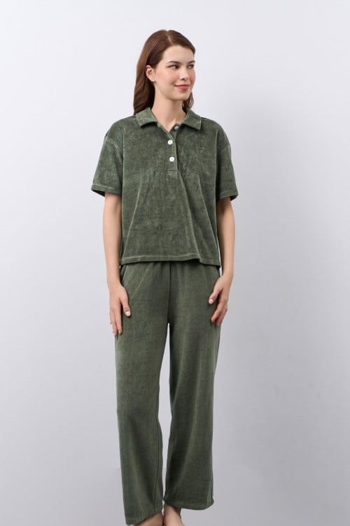 Bộ thun nhung chất liệu sang trọng ấm áp, áo tay ngắn quần dài
