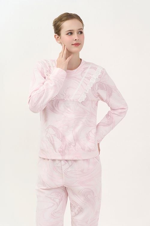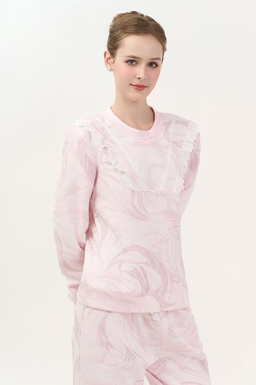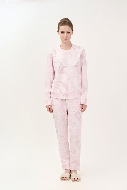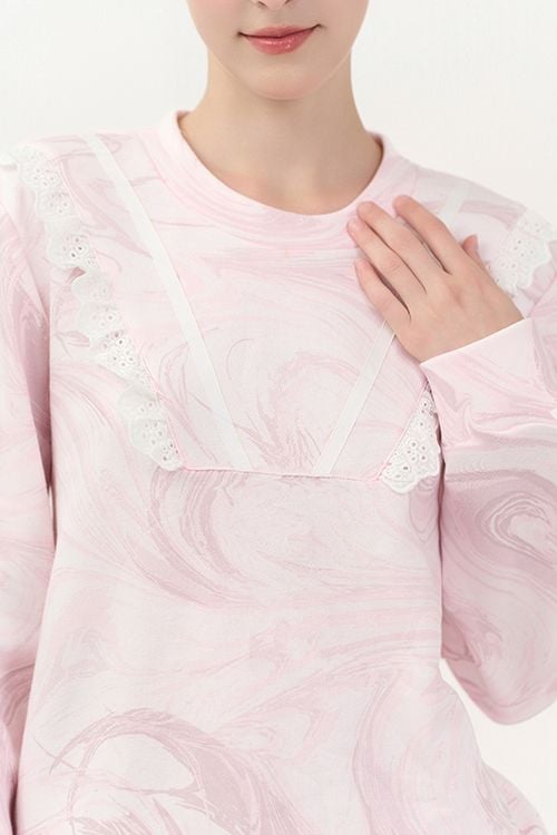 BTD13W5T01-BỘ THUN DÀI VỚI THIẾT KẾ CỔ TRÒN ĐIỂM NHẤN BÈO REN NỔI BẬT MANG LẠI SỰ ẤM ÁP VÀ DỄ CHỊU KHI MẶC.