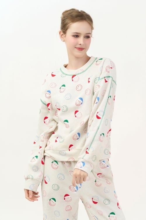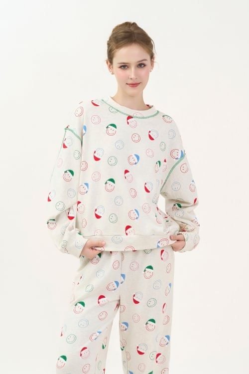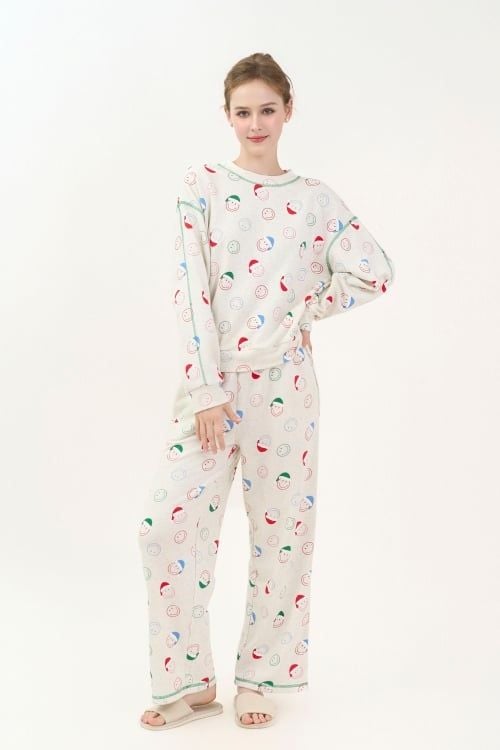 Bộ đồ có thiết kế cổ tròn đơn giản, tay dài, quần dài có những đường chỉ nổi trang trí làm điểm nhấn tinh tế . Form dáng thoải mái, phù hợp với nhiều dáng người.