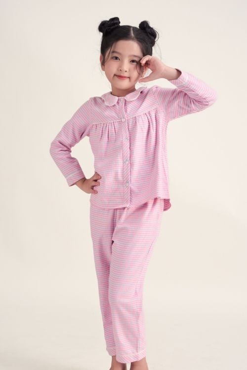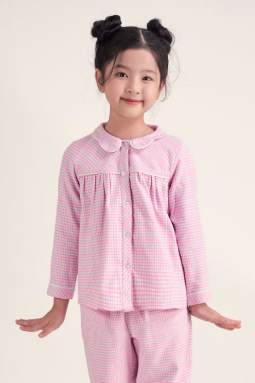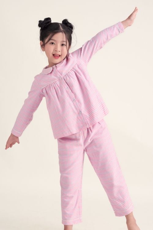 Bộ dài kate nỉ cho bé, chất liệu mềm mại cao cấp họa tiết caro hồng ấm áp cho mùa Đông.