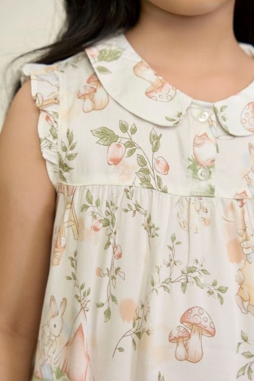 Bộ đồ mặc nhà bé gái với thiết kế cổ lá sen tay cánh tiên xinh xắn là lựa chọn hoàn hảo cho bé yêu nhà bạn. Chất liệu tole cao cấp mềm mại, thoáng mát cùng họa tiết in hoa trên nền vải trắng đáng yêu sẽ mang đến cho bé cảm giác thoải mái và năng động suốt cả ngày dài