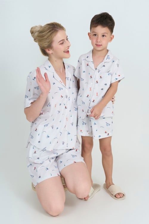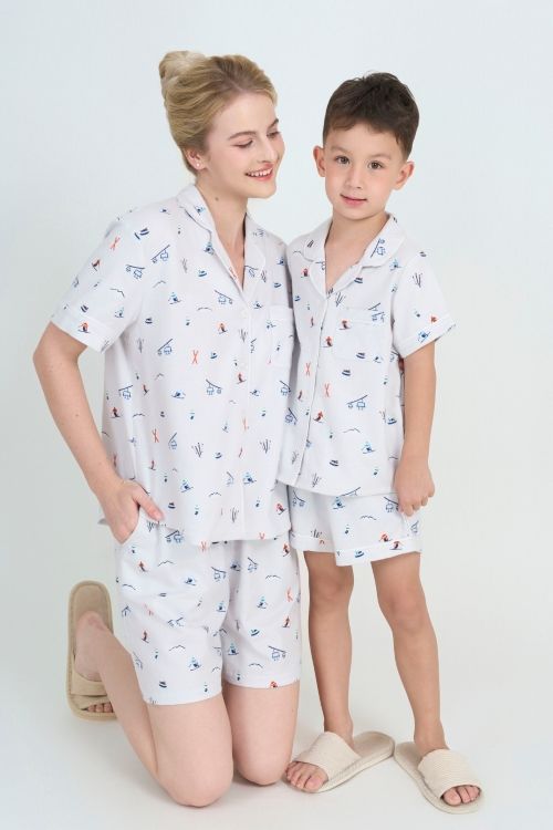 Thiết kế Pijama tay ngắn phối cùng quần short với phom suông rộng rãi, giúp bé dễ dàng vận động, chạy nhảy mà không cảm thấy gò bó. Đường viền tinh tế ở tay áo và ống quần tạo điểm nhấn chỉn chu, cao cấp.