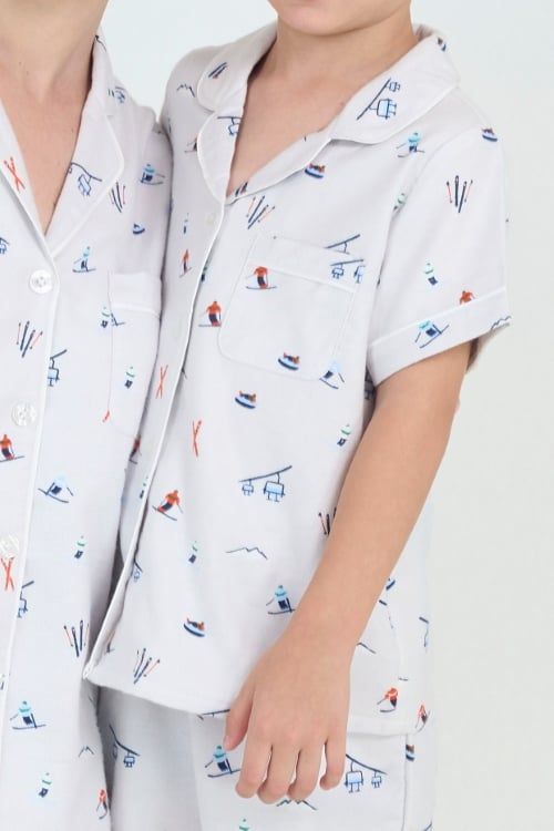 Họa tiết những vận động viên trượt tuyết nhỏ xinh trên nền xám nhạt mang lại vẻ ngoài tinh nghịch, đáng yêu cho bé. Đây là dòng sản phẩm đặc biệt có set Family, cho phép bé diện đồ "tông xuyệt tông" cùng ba mẹ, tạo nên những khung hình gia đình rạng rỡ và đáng yêu trong dịp lễ Tết hay những chuyến nghỉ dưỡng.