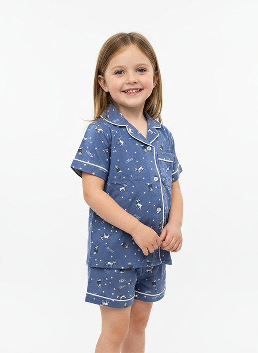 Thiết kế Pijama tay ngắn phối cùng quần short với phom suông rộng rãi, giúp bé dễ dàng vận động, chạy nhảy mà không cảm thấy gò bó. Đường viền tinh tế ở tay áo và ống quần tạo điểm nhấn chỉn chu, cao cấp.