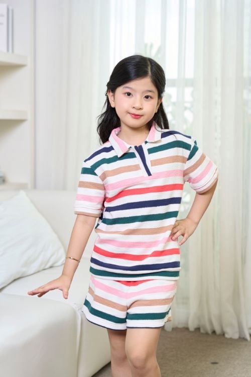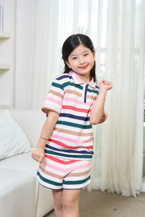 Bộ đồ short thun mặc nhà cho bé với thiết kế áo polo xinh xắn mang lại cảm giác thoải mái và dễ chịu trong giấc ngủ. Chất liệu thun cotton cao cấp mềm mại, thoáng mát