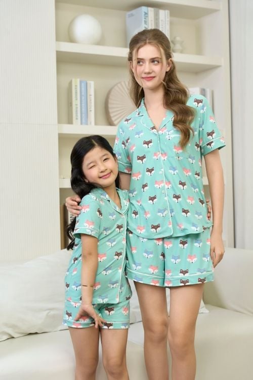 Áo thiết kế pijama đơn giản, tay ngắn kết hợp với quần short ngắn, thoải mái vận động.