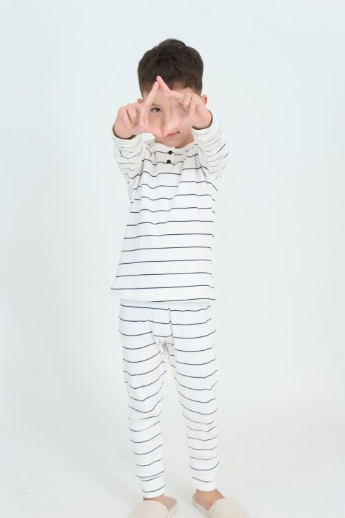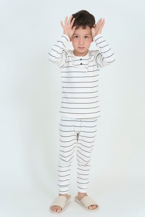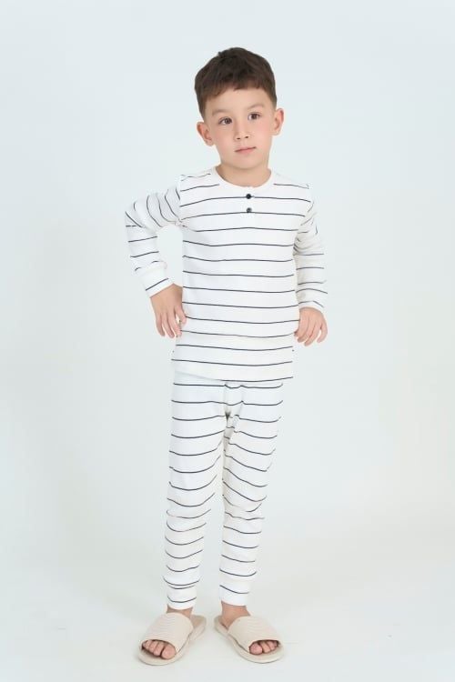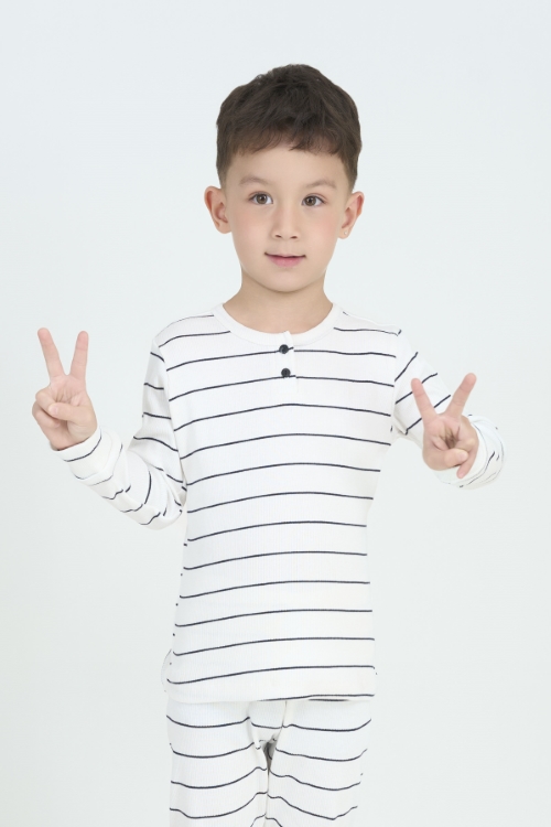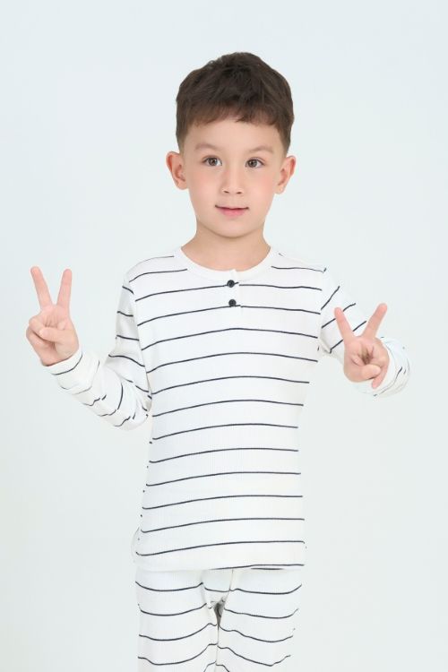 Bộ đồ thun dài tay cho bé. Với thiết kế cổ tròn xẻ trụ đơn giản nhưng tinh tế cùng chất liệu mềm mại, bộ đồ mang đến cảm giác thoải mái tuyệt đối, giúp bé tự tin tận hưởng những ngày se lạnh.
