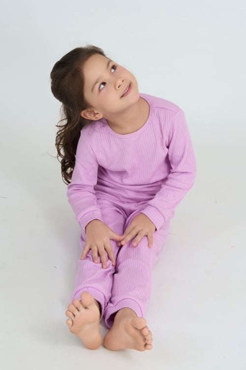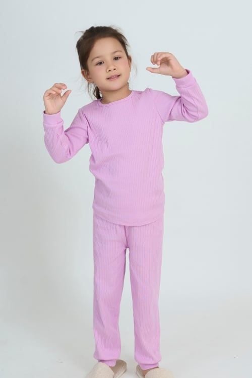 Bộ đồ có thiết kế áo cổ tròn đơn giản, tay dài kết hợp với quần dài giữ ấm tốt.