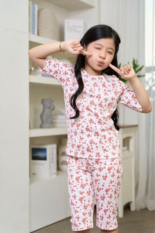Bộ đồ lửng thun mặc nhà cho bé với thiết kế basic cổ tròn, lai cuốn biên xinh xắn, mang lại cảm giác thoải mái và dễ chịu trong giấc ngủ. Chất liệu thun cotton cao cấp mềm mại, thoáng mát .