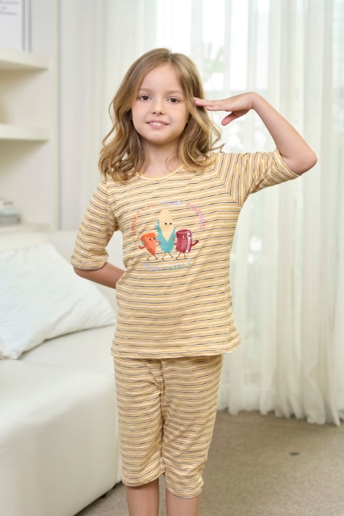 Bộ đồ lửng thun mặc nhà cho bé với thiết kế basic cổ tròn, mang lại cảm giác thoải mái và dễ chịu trong giấc ngủ. Chất liệu thun cotton cao cấp mềm mại, thoáng mát