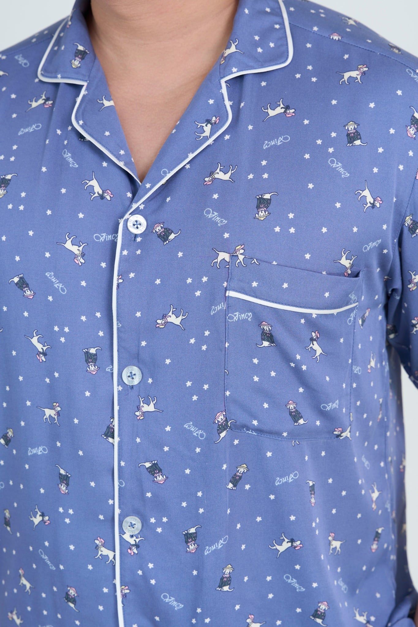 Họa tiết những chú cún nhỏ đáng yêu kết hợp cùng các chấm bi trắng trên nền xanh thanh lịch tạo nên sự trẻ trung, gần gũi. Đây là sản phẩm thuộc dòng Family Set, giúp bạn dễ dàng diện đồ đồng bộ cùng vợ và các con, tạo nên những khoảnh khắc gia đình ấm áp và đầy phong cách.