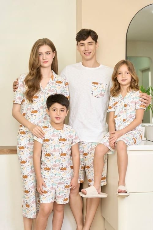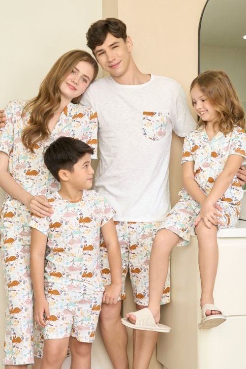 Bộ thun phối quần họa tiết và áo trơn cho nam