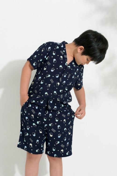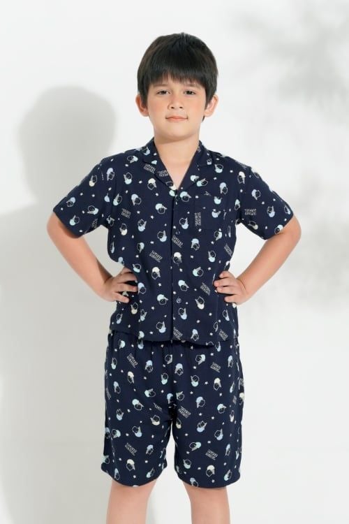 KST01W5T03-BỘ SHORT THUN VỚI THIẾT KẾ CỔ PIJAMA ĐIỂM NHẤN VIỀN NỔI BẬT MANG LẠI SỰ XINH XẮN VÀ NĂNG ĐỘNG CHO BÉ.
